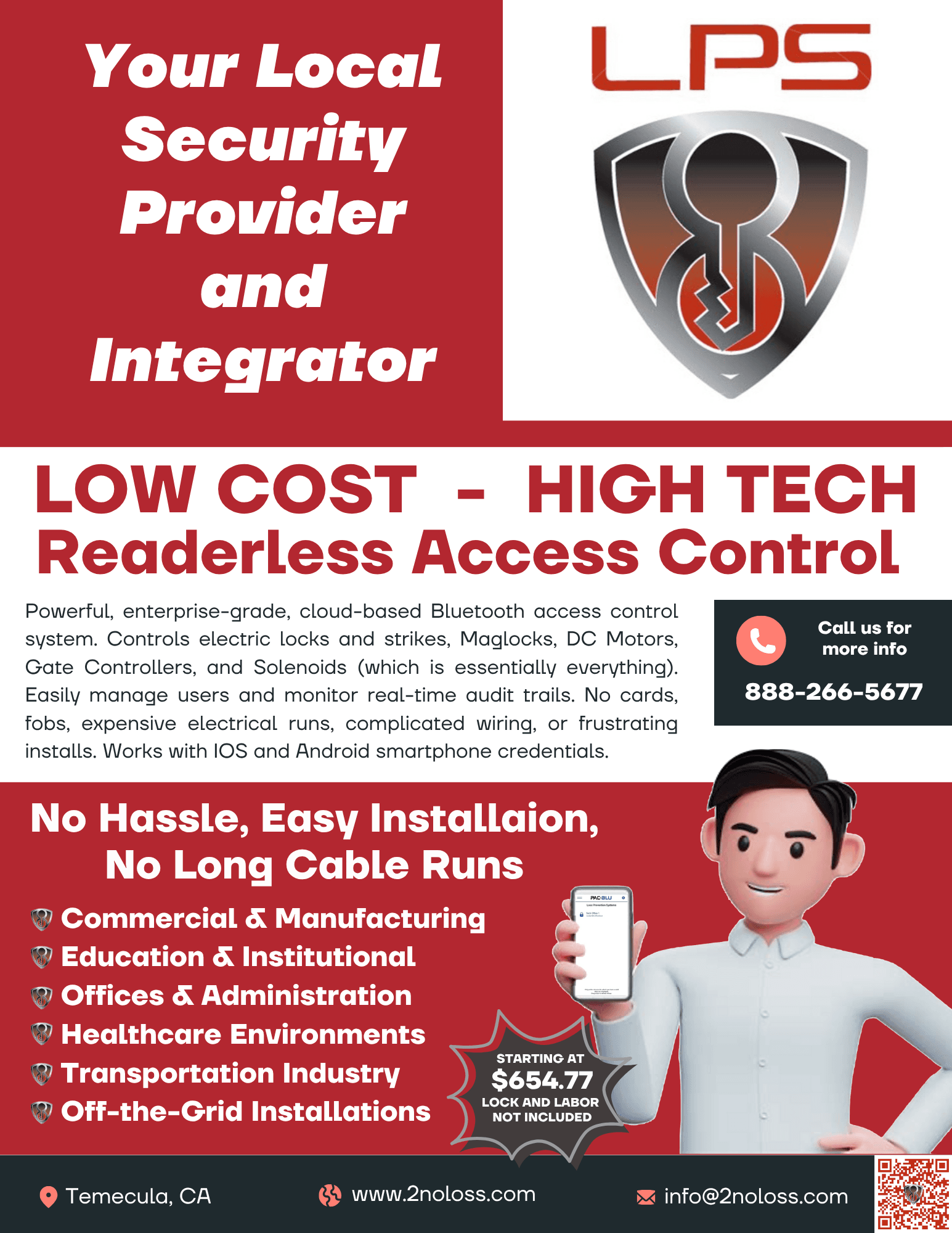 ACS, Access Control System, IDS, Intrusion Detection System, Door, Lock, Safe, Locksmith, turnstile, physical security system, alarm, card reader, photo eye, loop detector, automated vehicle gate, AVG, VMAG, Brivo, Eagle Eye, Alvarado, Barrier, Bollard, Grabnet, Access, ECP, entry control point, Gate, professional security hardware, Kaba Mas, X10 lock, X09 lock, CDX 10, CDX10, X10, X9, X09, X8, X08, crash gate, ACM, Access Control Management, ACC, Access Control Center, Biometric Access, Identity Management, Perimeter Motion Detection, ACM Embedded Controller, Manhole protection, New Sales, Installation, Maintenance, Repairs, Anti Vehicle Barrier Systems, Wedges, Drop Arms, Tire Shredders, Crash Net Barrier, Preventative Maintenance, Inspection Plan, and On-Site Repairs, Initial Maintenance Survey, Safety Procedures, Traffic Control, Monthly Required Preventative Maintenance, Yearly Required Maintenance, Maintenance Records, Repair Service Call, Non-Emergency Service Call, Emergency Service Call, Factory Part, Monthly Report, Warranties, warranty, Work Quality Standards, Quality Assurance, camera, HD Surveillance, HDSM, High Definition Stream Management, Megapixel Camera, VMS Platform, License Plate Recognition, Covert Surveillance, Interview Rooms, Biometrics Facial Recognition, Perimeter Security, Integration with access control, AI, Security System, commercial locksmithing, IC, Interchangeable Core System, Small and Large Formats, Door Locks and Hardware, Key Control, GSA Container, Safe Management, Emergency Mobile Command Center, Commercial Video Surveillance, Object recognition, Event correlation, Access control, Traffic analysis, Communications, Multi-site management, multi-area management, Emergency observation, data sharing, Sally Ports, EFO Buttons, Wrong Way Detection, Government Contracting, Commercial, Anywhere Cameras, AI Video Analytics, Line Crossing, Object Counting, Loitering, Camera Tampering, License Plate Recognition, Face Detection, Face Search, Worker Safety Monitoring, Anomaly Detection, Gun Detection, Covert Surveillance, Cloud, Cloud Storage, Perimeter Security, RFID Sticker, Smart Phone Mobile Credential, Mantraps, Biometrics Facial Recognition, Identity Management, KABA MAS Hamilton - X10 Mechanical, Electronic, Safe, Vault, Gate Operator, Gate Motors, Anti-climb Fencing, 911 video integration, Pole-Mounted Saves parking spaces, Pole mounted, pole-mounted, No Power needed, no Wifi Needed, Provides surveillance in a parking lot, Provides surveillance construction site, Provides surveillance in remote area, Temecula, San Diego, Ventura, Los Angeles, San Bernardino, Riverside, Murrieta, Perris, Lake Elsinore, Corona, Oxnard, California, Jurupa, Palm Springs, Moreno Valley, La Jolla, Vista, Port Hueneme, Mugu, Camarillo